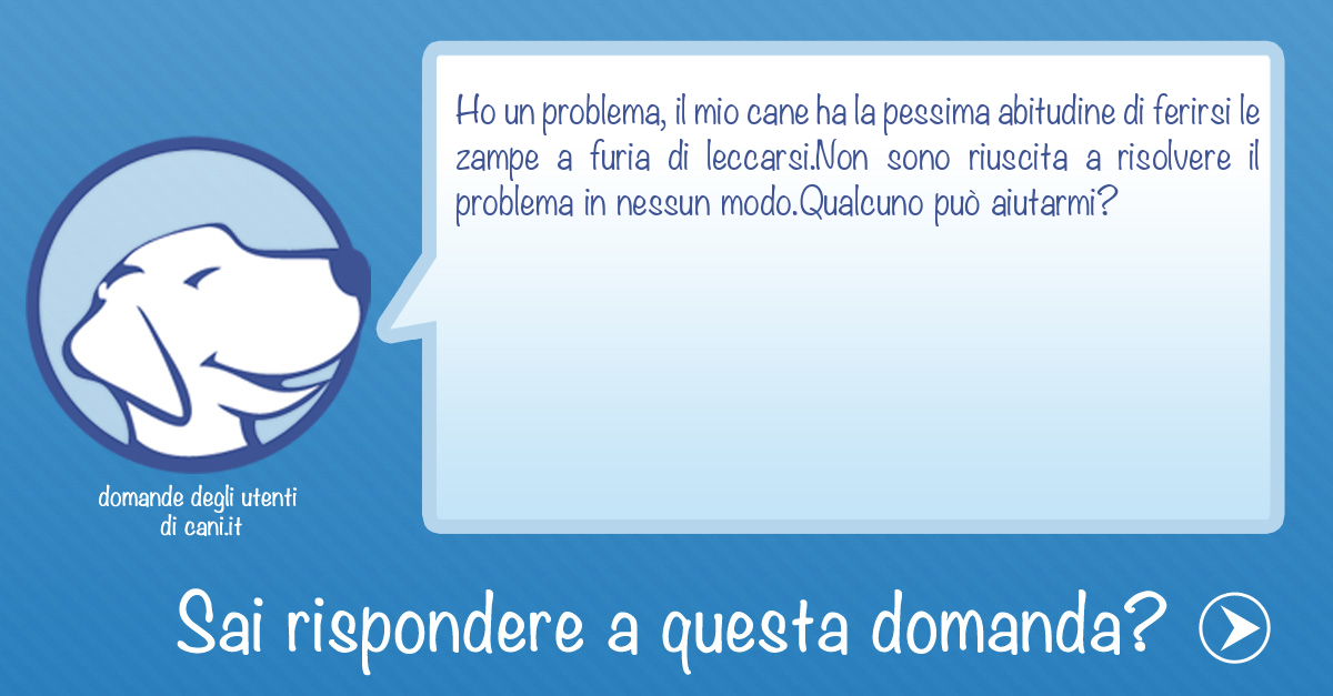Ho un problema, il mio cane ha la pessima abitudine di ferirsi le zampe a furia di leccarsi.Non sono riuscita a risolvere il problema in nessun modo.Qualcuno può aiutarmi?